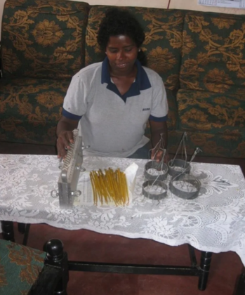Deze dame is een kaarsenmakerij gestart. De kaarsen worden verkocht aan de kerk.
